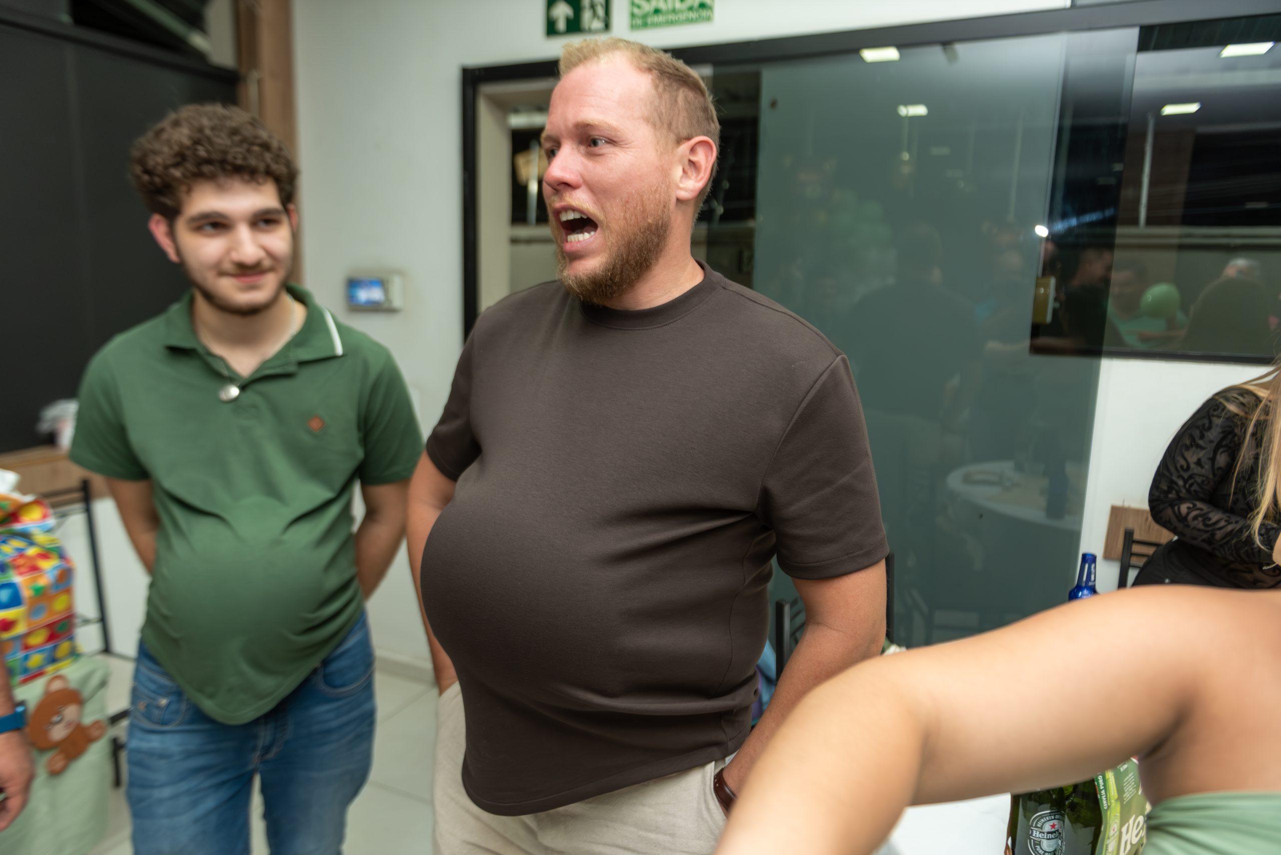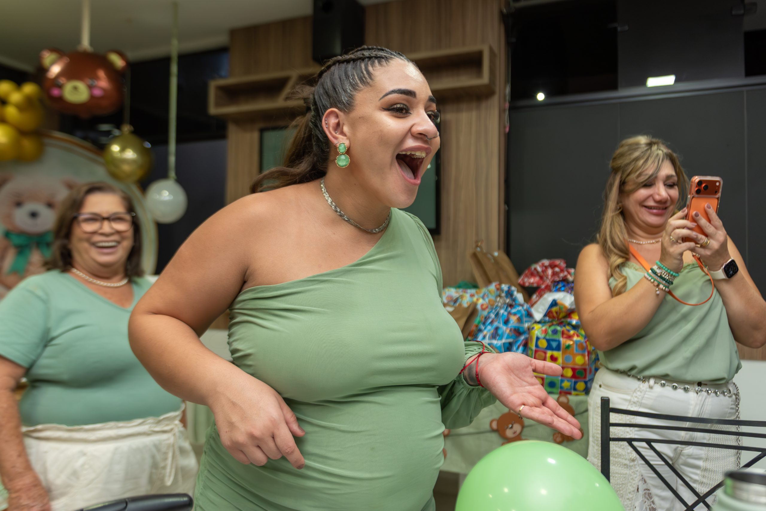 Lucca Victor está chegando e os preparativos começaram! No Chá de bebê, o enxoval vai tomando forma e as brincadeiras tomam conta… Teve quem acerta o tamanho do barrigão da mamãe, homens grávidos, quem acerta a quantidade de Marshmallows no pote e até quem seria a Nazaré Tedesco da noite, que raptaria mais bebês! Que o Lucca Victor Venha com muita saúde e traga muita alegria e união para a família!